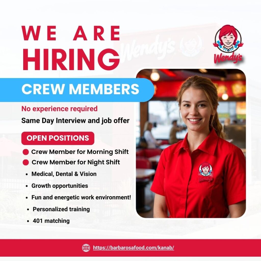 At Barbarosa Food , the proud franchise owner of Wendy’s in Kanab, Utah , we believe that a job should be more than just a paycheck—it’s a chance to grow, connect, and thrive. Whether you’re a parent balancing family life 👨👩👧👦, a student managing school and work 🎓🌙, or someone ready to take their career to new heights 🚀, Wendy’s in Kanab is here to support you every step of the way.